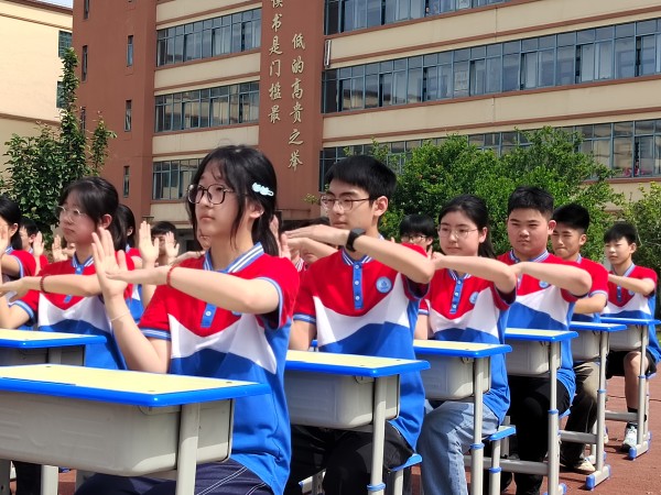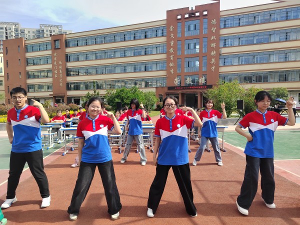 比赛现场,各班学生精神抖擞、神采飞扬。随着动感的音乐响起,同学们以课桌为舞台,用整齐划一的动作、自信阳光的笑容,尽情展示着青春的风采。有的班级将经典与潮流结合,在标准动作中融入独特创意,动作设计别出心裁;有的班级凭借超强的团队协作能力,每一个抬手、转身、击掌都精准无误,展现出高度的默契与纪律性。一时间,呐喊声、加油声此起彼伏,整个篮球场化作青春活力的海洋,充分彰显出高一年级学子们积极向上的精神风貌。