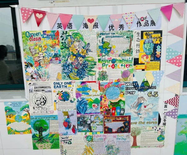 赛后,高一英语组的老师们将学生们的优秀海报展示在年级走廊上,原本素白的墙面瞬间化作会“说话”的生态画廊,引得师生们频频驻足细读。