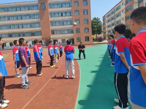 5月30日上午第三节,合肥新康中学初中部操场上,一节充满活力的体育公开课如期举行。本次课由资深教师王永飞执教,课题为《正面双手垫球》,吸引了校领导及多位体育教师观摩。