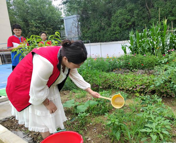 翻地工作完成后,党员教师化身“播种导师”,指导学生在整理好的土地上精心播撒希望的种子。此后,每日课余时间,党员老师们都会轮流来到劳动基地,依据天气变化与幼苗生长情况,精准调整浇水量与施肥量。从破土而出的嫩芽到茁壮成长的青苗,每一株幼苗都凝聚着师生们的心血与期盼。