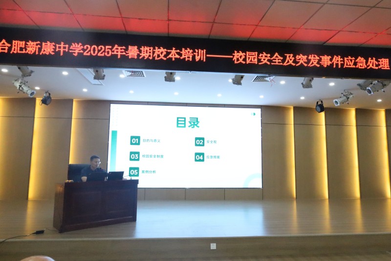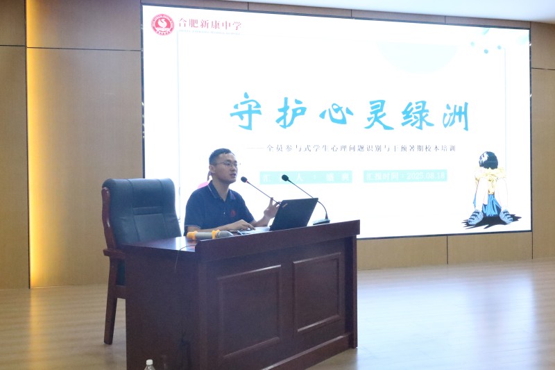 2025年8月18日,合肥新康中学开展暑期校本培训第二日活动。本次培训由校办公室主任杨薇主持,围绕“学生心理干预、班级管理、校园安全”三大核心主题展开,通过专题讲座、案例解析,助力教师提升综合素养,为新学期教育教学工作赋能。