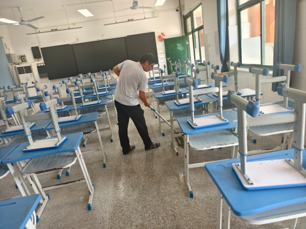 早在报到日前,老师们便已投入紧张的准备工作。他们不畏炎热,汗流浃背地打扫教室、整理桌椅、布置环境,每一处细节都凝聚着对新生到来的期待与关怀,只为以最整洁、最温馨的校园,迎接每一位新同学的到来。