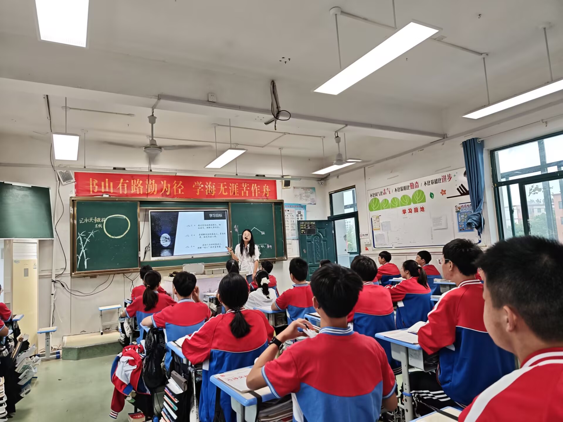 2025年9月18日上午,语文组陈韵枝老师在八(1)班执教公开课,讲授苏轼名篇《记承天寺夜游》。本课选自苏轼贬谪黄州时期创作的一篇经典小品文,全文仅八十余字,以简洁笔触描绘了月夜游寺的清幽意境,展现了作者豁达中略带孤寂的复杂心境。