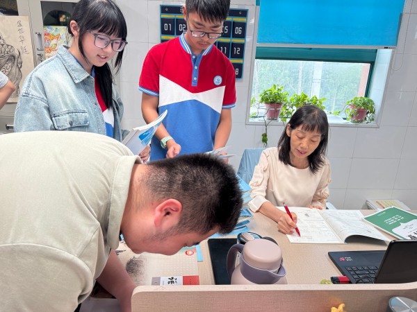 每当课间铃声响起,教师办公室便迎来了一天中最热闹的时刻。学生们带着学习中的困惑而来,捧着课本和练习册,有序地等候在老师身旁。各科教师桌前,总能看到老师们专注辅导的身影,他们放下手中的水杯,推迟休息时间,第一时间为学生们答疑解惑。