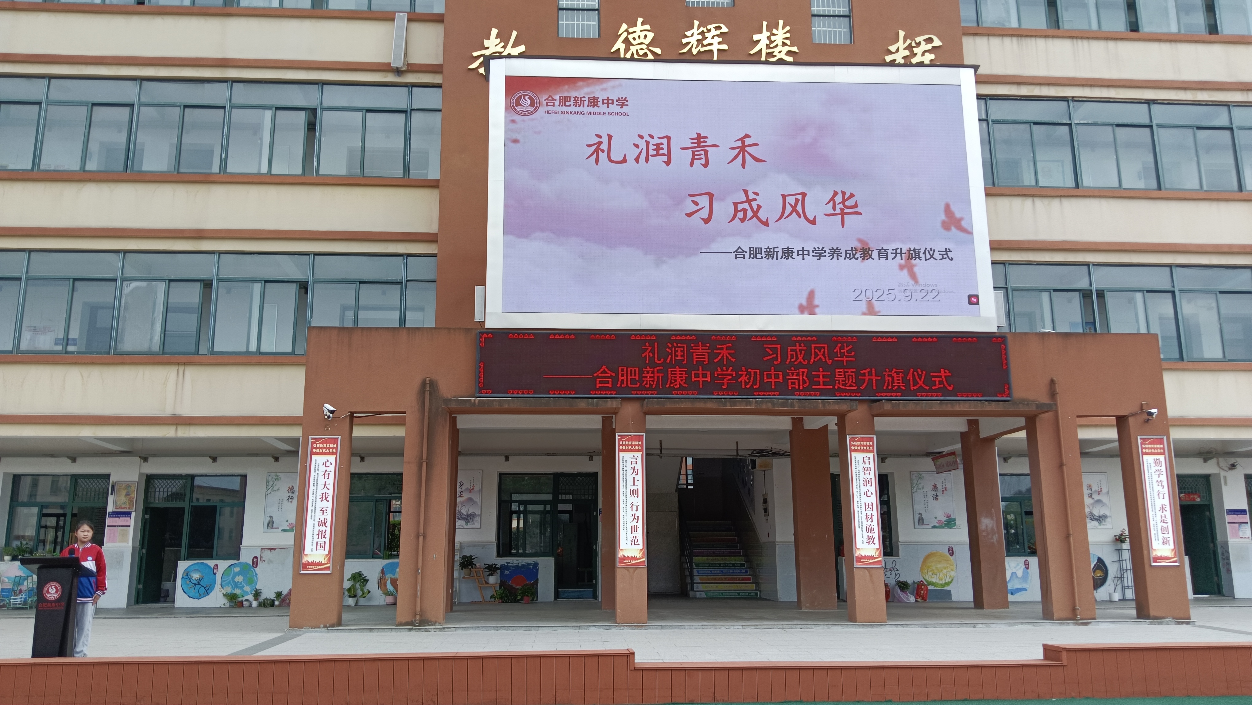 9月22日,我校初中部以“礼润青禾,习成风华”养成教育为主题,举行了庄严的升旗仪式。本次升旗仪式由九(5)班王佳丽同学主持,九(5)班班锦豪同学作国旗下主题发言,同学们在晨光中共同开启一场关于习惯与成长的教育对话。