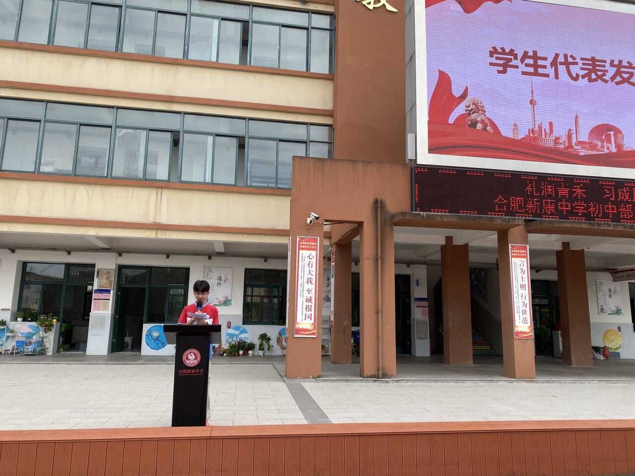 在热烈的掌声中,班锦豪同学走上台前,以《礼润青禾,习成风华——让养成教育点亮青春底色》为题展开演讲。他从校园日常小事切入,提出“课前摆好课本、见面主动问好”等行为皆是养成教育的具体体现,生动将同学们比作“待成长的青禾”,而“礼仪”与“习惯”则是滋养大家扎根向上的“雨露阳光”。他还结合自身经历,分享了从“桌面杂乱无序”到“主动整理收纳”的转变,同时提及学校集体跳绳队凭借“每日课间练习十分钟”的坚持,最终斩获包河区第一名的事例,深刻诠释“习成风华”的内涵。此外,他也坦诚分享了克服“作业拖延”的经验,鼓励同学们无需追求“一步到位”,可从“每天提前十分钟写作业”这样的小事起步,逐步养成良好习惯。