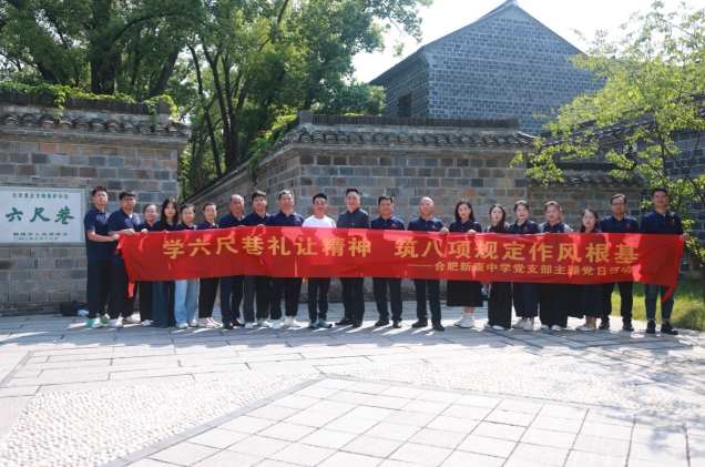 2025年9月17日上午,合肥新康中学党支部一行20人,在合肥市督导专员、校党支部书记吴庆防等领导带领下,奔赴桐城六尺巷景区,开展主题鲜明的主题党日活动。此次活动的核心目的在于,深入挖掘“六尺巷”典故所蕴含的“礼让和谐、知进退、守规矩”的传统智慧,并将其与新时代落实中央八项规定精神、加强作风建设的实践要求紧密结合,为党员干部修身律己、履职尽责提供丰厚的文化滋养和深刻的现实启示。