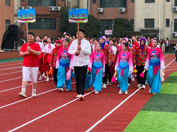 各班级还挖掘了不同地域的非遗文化,从婉转的黄梅戏到豪放的安塞腰鼓,从精美的苏绣图案到活泼的东北秧歌,方阵所过之处,如同一幅幅流动的中华文化长卷,让整个运动场变成了一个多彩非遗的“露天博物馆”。
