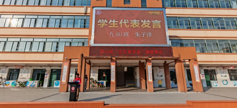 九6班优秀学生代表朱子洋发言,他告诉同学们学校设置“志方奖学金”是给同学们最大的激励,也是弥足珍贵的荣誉,他希望同学们要抓住机会努力奋斗,在学习中抓住每分每秒,不虚度光阴;注重学习中的每一个细节,认真听好每一节课,认真做好每一题,做一个有梦想,敢成功的新时代好少年!