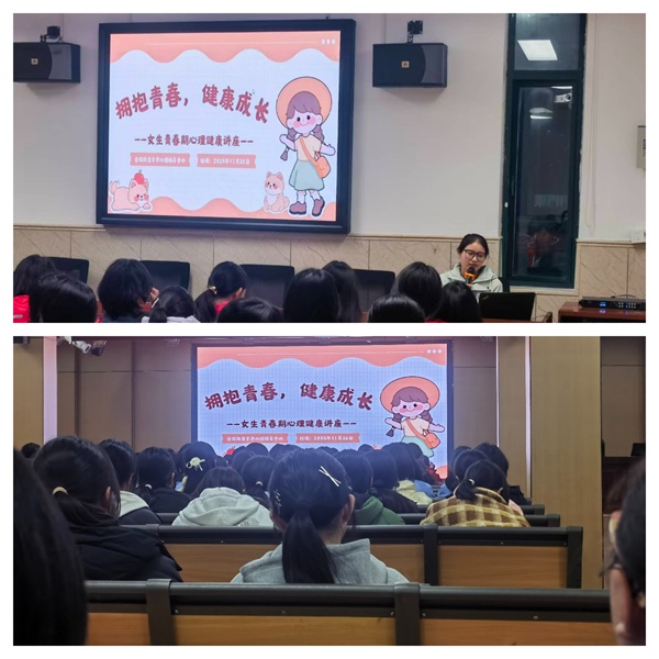 为引导女生正确认识并积极应对青春期的身心变化,提升自我保护意识,我校专职心理教师王静于2025年11月25日、26日晚,分别在教学楼一楼会议室及报告厅为八年级、高一年级女生开展了以“拥抱青春,健康成长”为主题的青春期心理健康讲座。