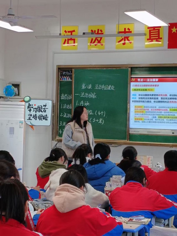 政治组史佳莉老师在高三年级开展《法治国家》督导复习课。针对学生知识碎片化现状,她采用框架建构与概念辨析相结合的方法,引导学生从“全面依法治国”的高度整合知识、阐明意义。课堂节奏紧凑、讲练结合,在系统梳理中强化学生的政治认同与法治意识。教学督导组评价本节课目标明确、设计严谨,充分体现了高三复习课的针对性与实效性。