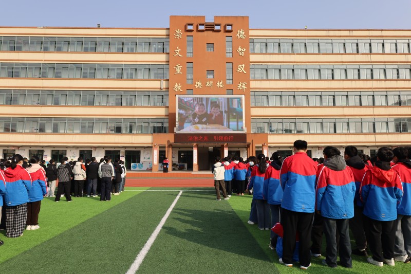 12月1日清晨,八(3)班承办的主题升旗仪式准时开始。教师代表蔡凌雯作《与法同行,护航青春》国旗下讲话,用校园周边交通事故、网络打赏、校园欺凌等鲜活案例,串讲《道路交通安全法》《义务教育法》《未成年人保护法》,让学生秒懂“违纪与违法只有一线之隔”。随后,全体师生观看3分钟微视频《宪法在我们身边》,在“一声鸣笛、一次直播、一条跟帖”的镜头切换中,真切感受“宪法就是你我生活的说明书”。