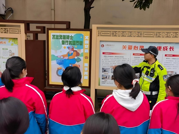 我校将校园周边道路交通安全治理纳入常态化管理,通过“治理、管理、教育”三措并举,持续筑牢学生出行安全防线。一方面,学校积极协同相关部门,定期对校园周边道路开展交通秩序整治与隐患排查,优化通行环境。同时,持续强化“护学岗”机制,特别在节假日等离校高峰时段,组织开展“暖心护航党员护学岗平安行动”,动员党员教师轮值“党员护学岗”。值守党员佩戴党徽、身着志愿服,在校门口热情协助维持秩序、疏导交通,以实际行动守护学生离校安全,彰显党组织在平安校园建设中的引领作用。另一方面,学校常态化开展形式多样的交通安全教育活动,通过主题班会、知识讲座、场景模拟等形式,不断巩固学生的交通规则意识与自我防护能力。多管齐下,系统施策,切实降低学生交通事故风险,全力守护每一位学生的平安之路。