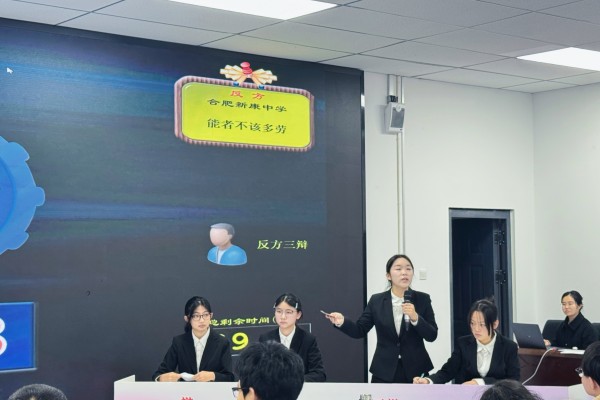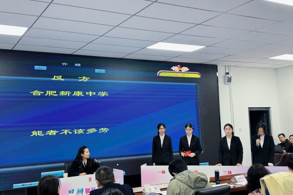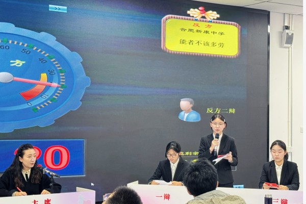 近日,合肥市第十五届中学生辩论赛圆满落幕,合肥新康中学辩论队凭借出色的表现和深刻的思辨,从众多参赛队伍中脱颖而出,荣获大赛二等奖。本次比赛中,我校学子围绕“能者不该多劳”这一富有现实思辨意义的辩题,展开了激烈而精彩的交锋。