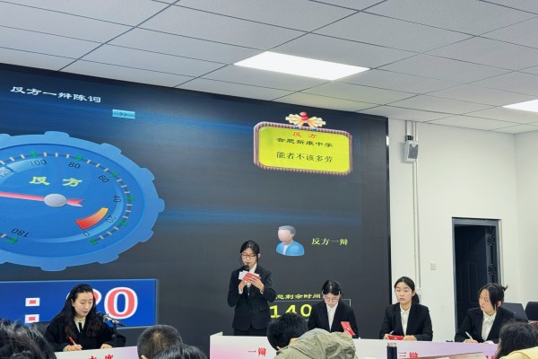 在辩论场上,新康中学的辩手们精神饱满,信心十足。面对对手的步步紧逼,他们沉着应对,条理清晰,展现了出色的逻辑思维和语言表达能力。“能者多劳”这一传统观念在现代社会面临新的审视。我校辩论队的辩题“能者不该多劳”,并非否定能者的价值与贡献,而是倡导更为科学合理的社会分工和资源分配。