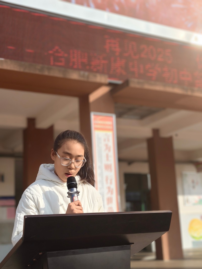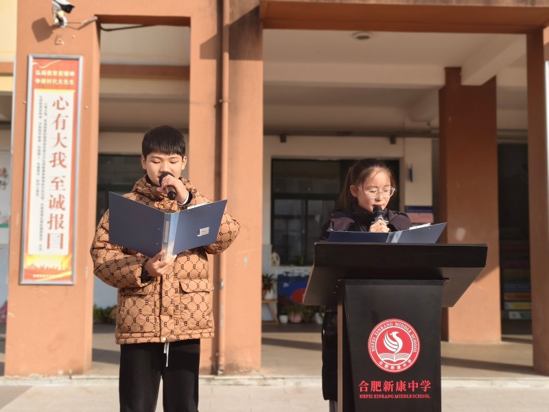 发言结束后,现场响起悠扬的音乐,李驭轩与阮思琪同学携手带来诗歌朗诵《新年,你好!》。他们精神饱满、声情并茂,用温暖的声音传递着对新年的问候与期盼。“新年,你好!带着全新的希望,我们向你奔跑······”,一句句饱含深情的话语,在校园中久久回荡,既表达了对过往岁月的感恩,也传递了对未来的坚定信念,让同学们沉浸在温馨而励志的氛围中。