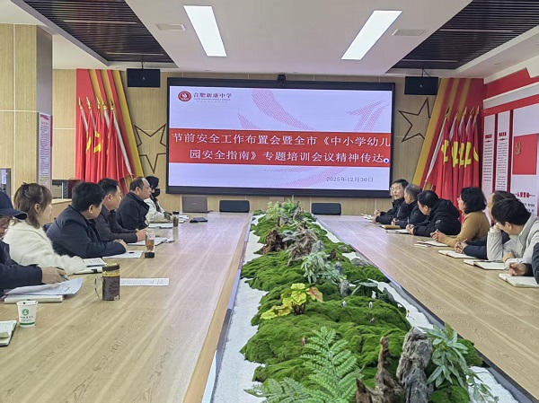 2025年12月30日上午,合肥新康中学召开节前安全工作布置会,传达全市《中小学幼儿园安全指南》专题培训会议精神,并就校园安全工作进行深入部署。学校领导班子成员、各部门负责人参加会议。