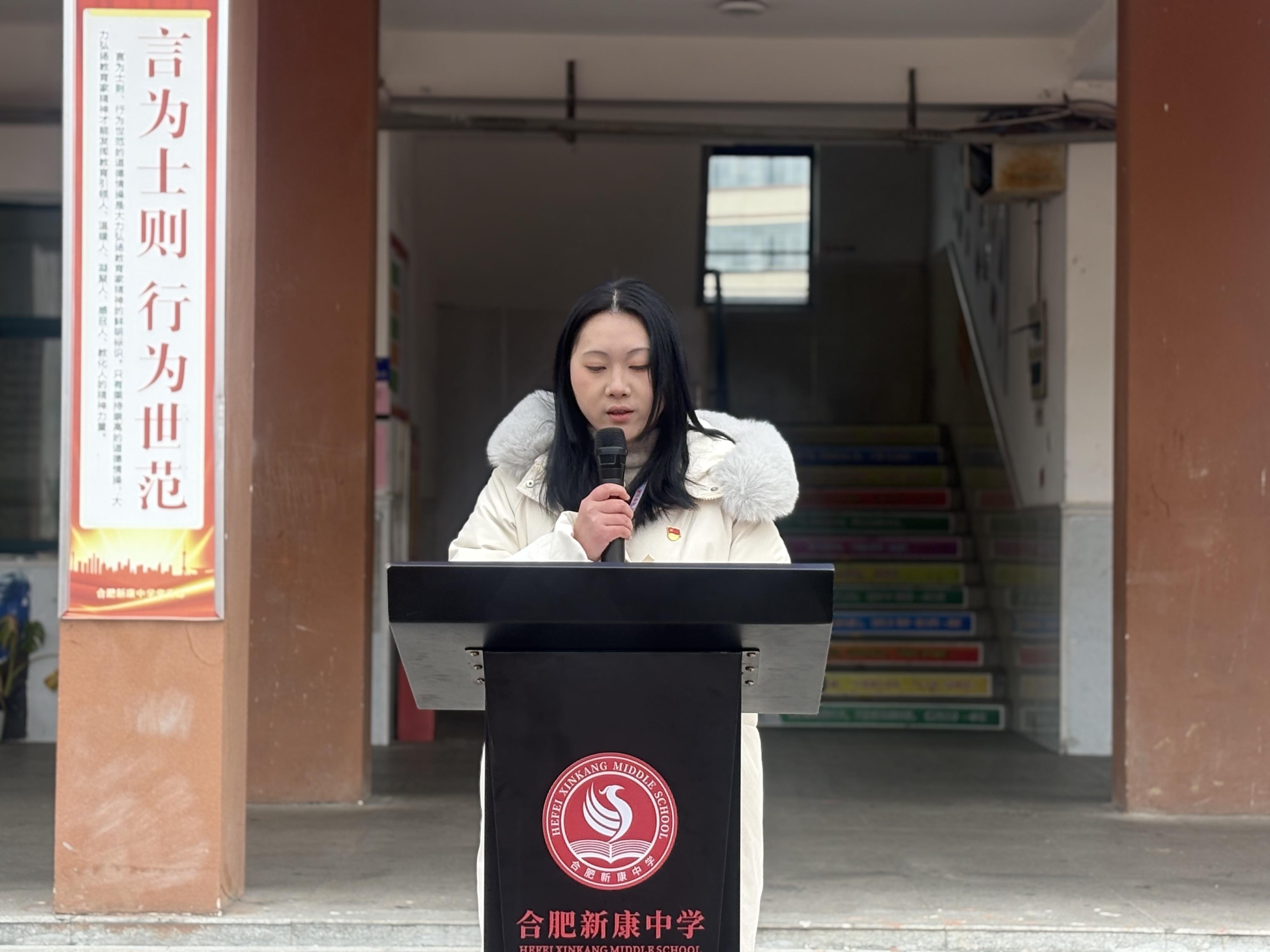 观看视频后,学校党员教师代表、校园安全网格化管理员陈元晴老师发表了讲话。她呼吁全体师生共同守护校园安全,介绍了网格员每日细致排查隐患、严格执行闭环管理的工作常态,并强调了党员教师在安全巡查、教育引导、秩序维护等方面的先锋作用。陈元晴向全体同学发出倡议,希望大家争做安全“观察员”“践行者”和“宣传员”,从细节做起,及时报告隐患、遵守安全规范、传播安全知识。他最后号召全校师生携手织密安全防护网,共建平安和谐的校园环境。