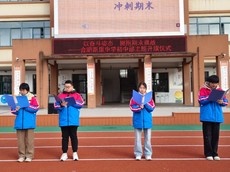 冬日晨光温暖校园,五星红旗迎风飘扬。临近期末,为凝聚学子奋进力量,激发同学们惜时拼搏的壮志豪情,合肥新康中学初中部于1月12日上午举行了“以奋斗姿态,拥抱成长挑战”主题升旗仪式。活动由八(2)班主办 ,程雨晨同学主持。