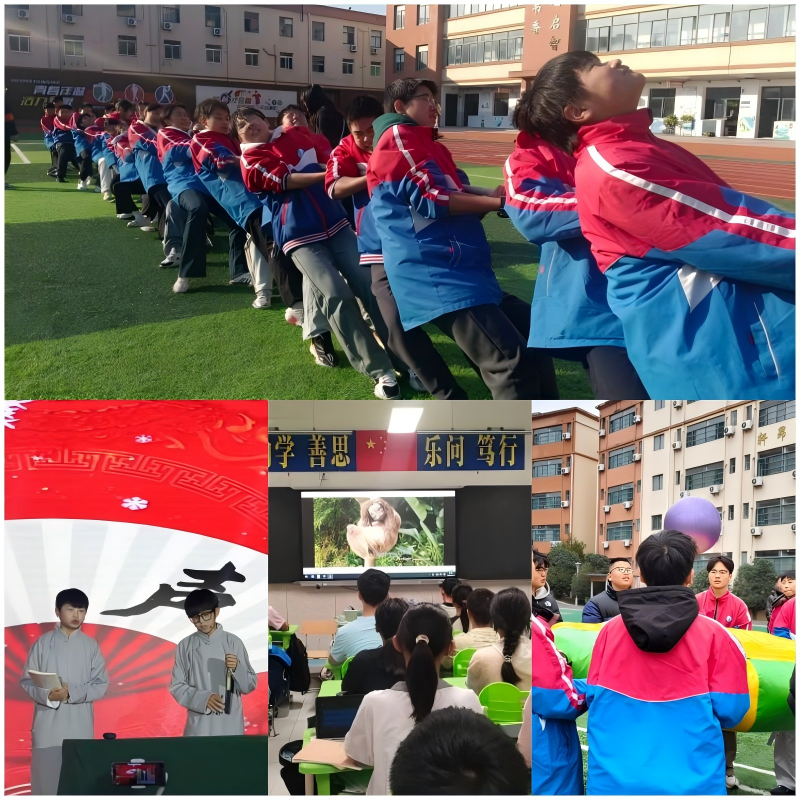 多彩活动为校园生活注入满满元气。第七届校园文化艺术节精彩上演,同学们以歌舞献礼青春,定格逐梦路上的美好回忆;“新康力量”拔河比赛火热开赛,呐喊声、助威声此起彼伏,班级凝聚力在竞技拼搏中不断增强;趣味运动会上,学子们尽情释放活力,运动场上洋溢着欢声笑语;大课间“开心一刻钟”让同学们各展所长、绽放个性;“我爱看电影”活动精选优质影片,让学子们在光影中感悟成长,享受轻松而有意义的课余时光。