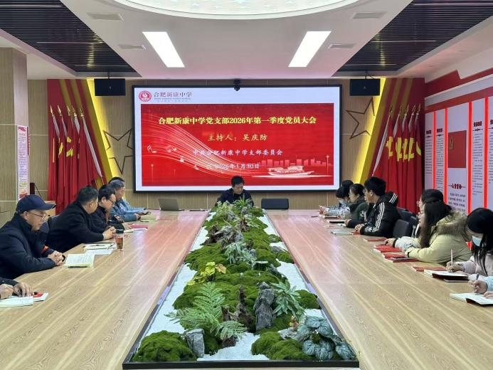为深入学习贯彻党的最新理论精神,筑牢基层战斗堡垒,合肥新康中学党支部于1月30日召开2026年第一季度党员大会。本次大会由校党支部书记吴庆防同志主持,全体党员同志齐聚一堂,共学理论、共商发展、共话担当。