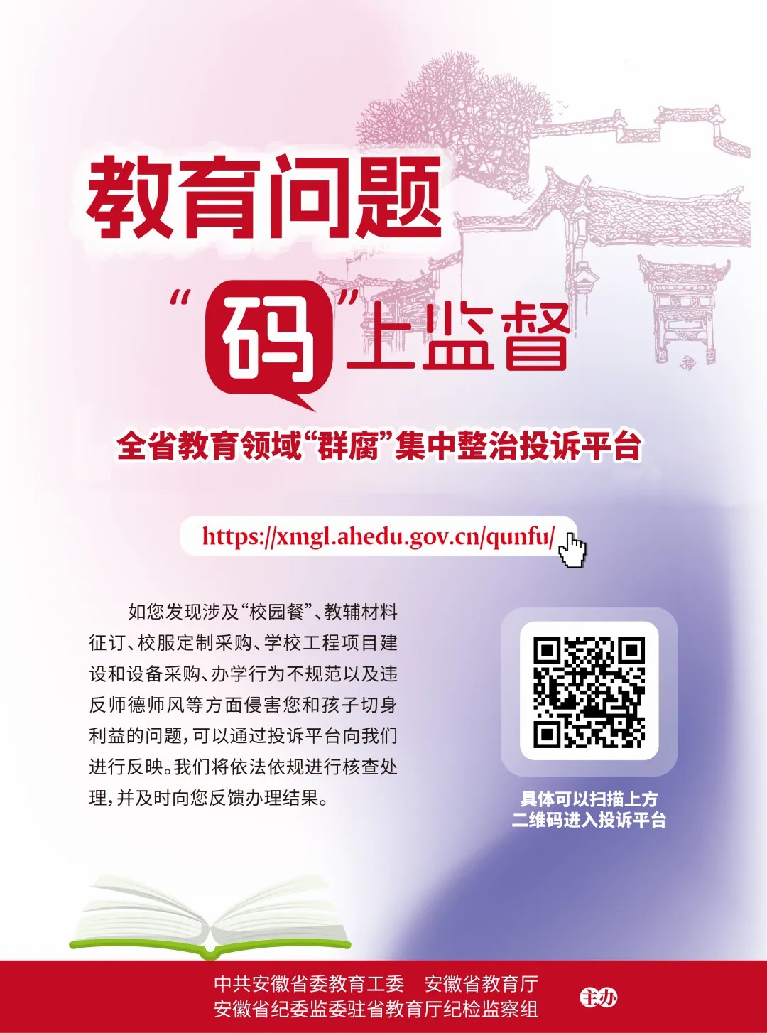 为营造阳光透明、公平公正的育人环境,让广大中小学生健康快乐成长,合肥市教育局2026年依托全省教育领域“群腐”集中整治投诉平台 ,持续推进教育领域群众身边不正之风和腐败问题集中整治。