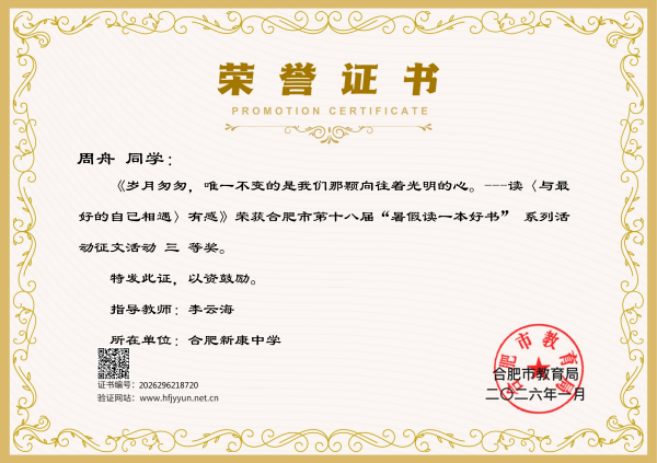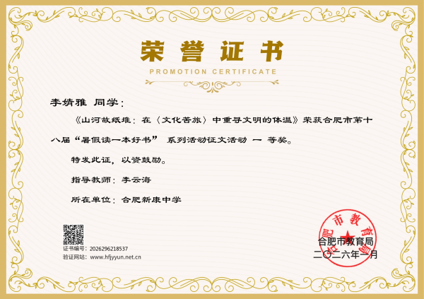 此次活动不仅是一次文字的比拼,更是一次心灵的交流。合肥新康中学的同学们利用暑期时光沉浸书海,将阅读的感悟与思考凝于笔端。佳绩的取得,离不开学校对书香校园建设的常抓不懈。合肥新康中学通过营造浓厚的阅读氛围、开设丰富的阅读课程,引导学生在阅读中开阔视野、润泽心灵、提升素养。
