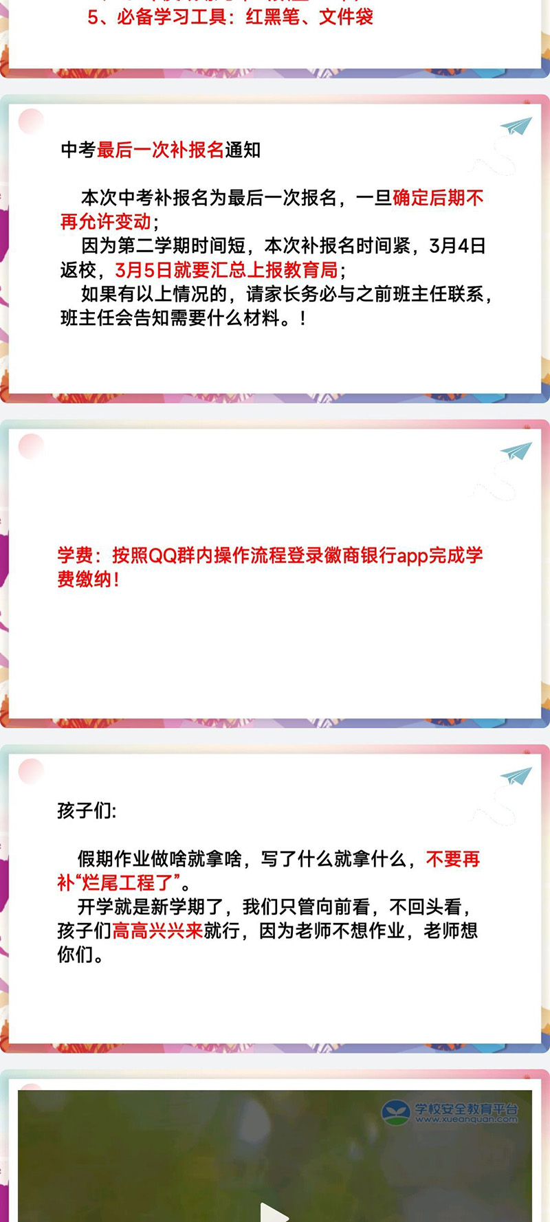 会上,家长与学生共同观看安全宣传片,围绕防溺水、交通安全、消防安全、网络安全、防拐防骗、食品安全等内容开展安全教育,进一步筑牢校园安全防线。